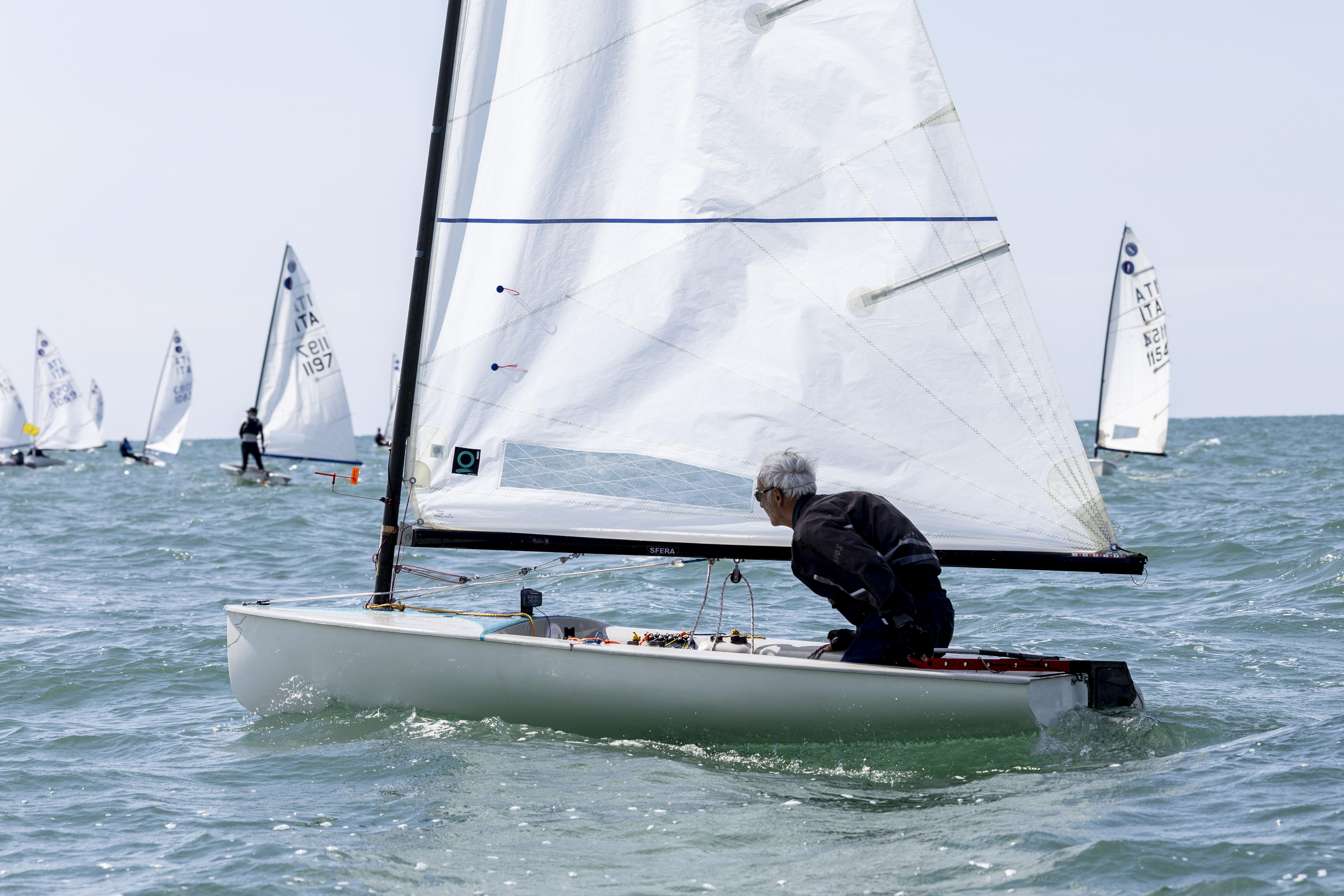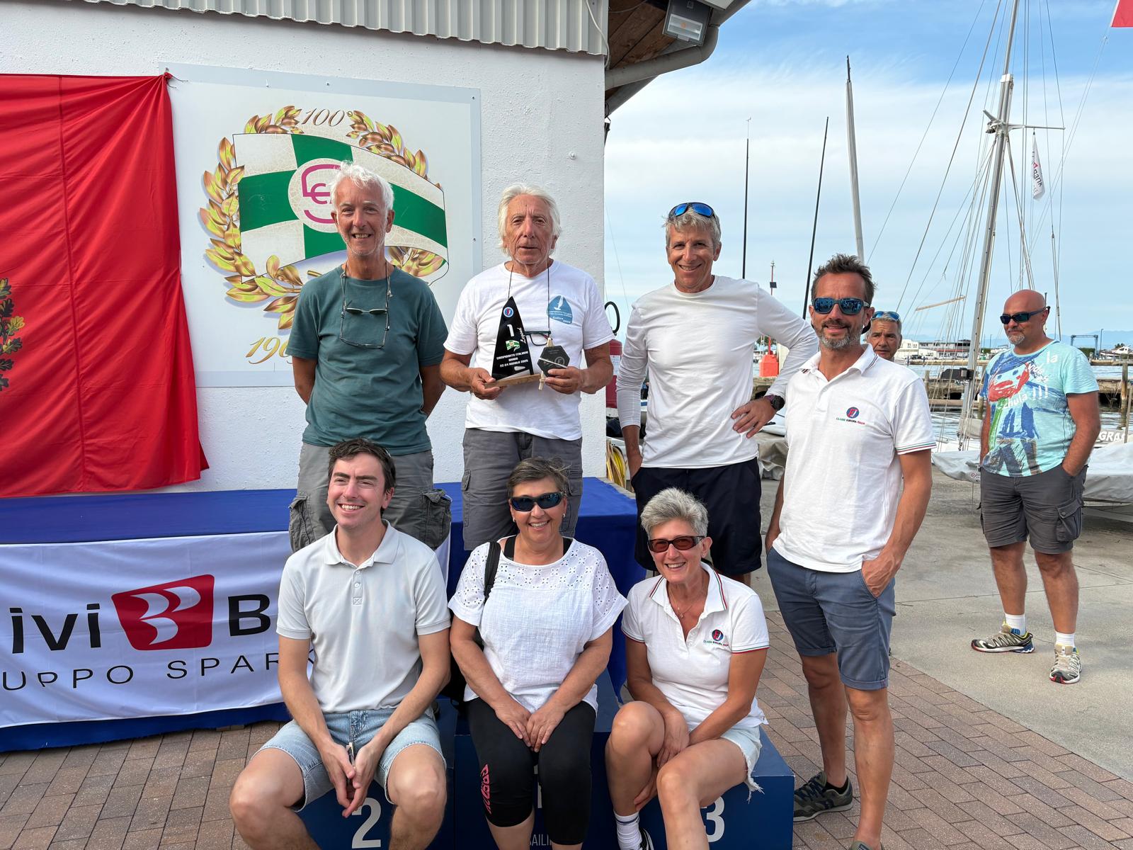 E passiamo quindi all'altro nutrito gruppo di agguerriti europeisti del GEAS NBC: quest'anno per alcuni di loro era la prima esperienza di vela al mare! Che dire, un'ottima esperienza e grande partecipazione con ben 7 soci al Campionato Italiano organizzato dalla Società Canottieri Ausonia di Grado: Filippo Rinaldi, Corrado Carignani, Marco Branchini, Paolo Abbondi, Laura Degani, Raffaella Meregalli e Walter Mazzella (rispettivamente 13, 24, 25 26, 27, 29 e 30 posto overall). Abbiamo l'onore però di avere tra i nostri atleti anche il vincitore della classe Legend ovvero il nostro grande Walter Mazzella.